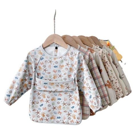 Kids Waterproof Bib Easy Clean Smock for Babies Protection Outfits Washable Baby Long Sleeved Bibs Toddler Bibs
